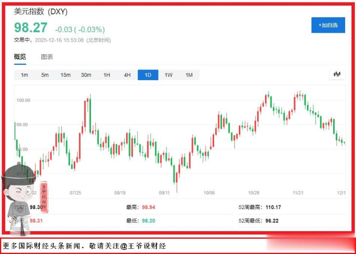 美联储12月第三次降息后,美元指数直接跌破98关口,今年以来累计下跌8.66%。美元就像超市打折的商品,它一降价,人民币自然就显得更“值钱”了。