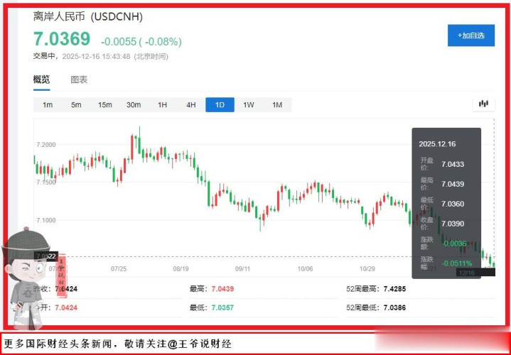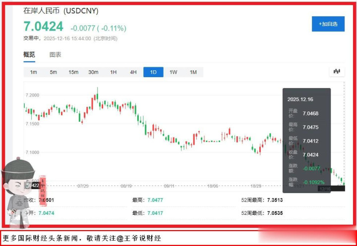 可能有人没概念,咱们用大白话拆解:从11月21日至今,短短20多天,人民币从7.11附近一路飙升到7.05,足足涨了600个基点。