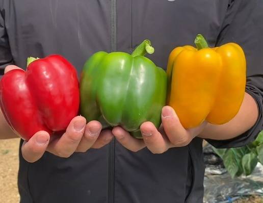 “这批‘太空椒’依托航天育种技术精心培育,是优质无限生长型品种。”基地负责人代信一介绍,与普通辣椒相比,“太空椒”果大肉厚、汁水充足,兼具果色鲜亮、口感清甜、营养含量高、耐储运、抗逆性强等优势,成熟后会呈现青、黄、红三种颜色,既可作为蔬菜烹饪,又能像水果一样直接生食,也被称作“水果甜椒”。