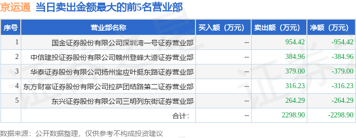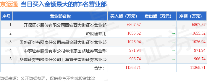 证券之星消息配资实力股票配资门户,沪深交易所2025年7月10日公布的交易公开信息显示,京运通(601908)因有价格涨跌幅限制的日收盘价格涨幅偏离值达到7%的前五只证券登上龙虎榜。此次是近5个交易日内第1次上榜。